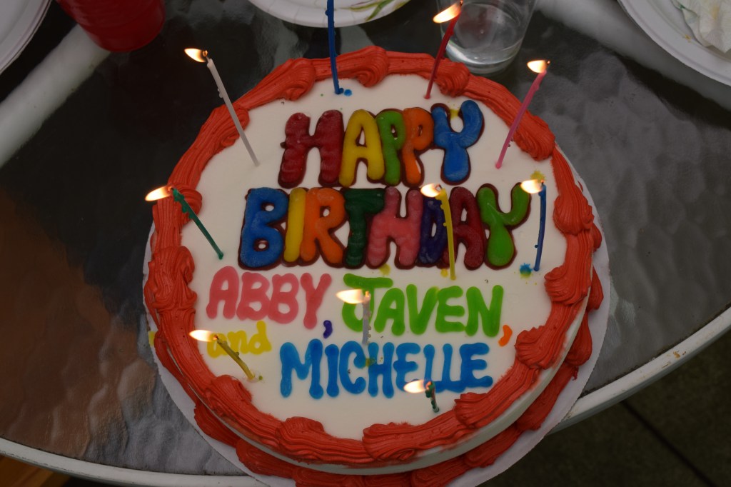 We parked at Mike’s parents’ house in Canton, Ohio for part of a day. While there they were kind enough to put my name on the cake along with Michelle’s and Abby’s.