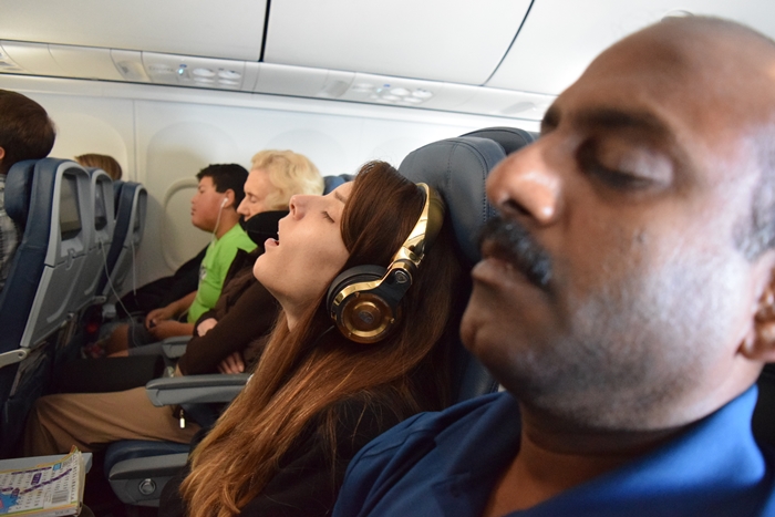 my isle mates: an Indian airplane company employee and a lingerie model. Most conversation I’ve ever had during a flight..but they were both sleeping here.