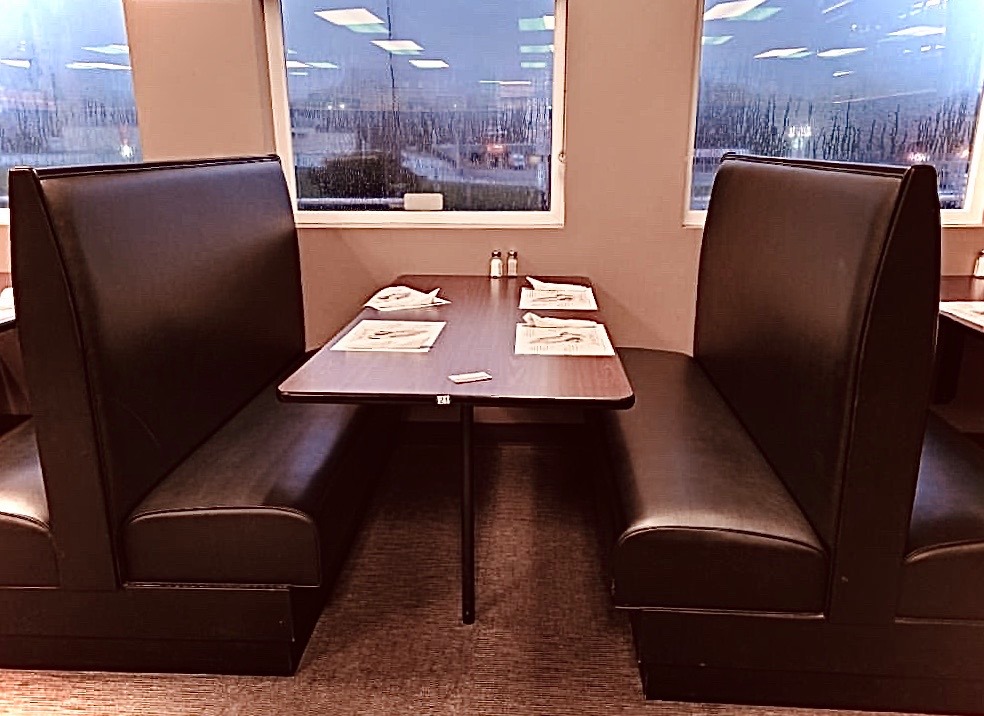 a short poem written from my office chair, about sitting in booths.
