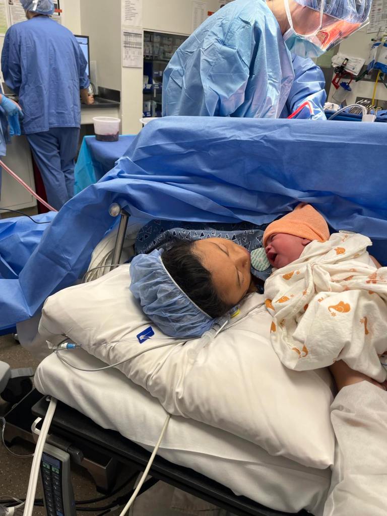 I asked CeCe, with some words typed on my phone, if we would need a cesarean. She said it was possible. Aleisha was all for it – she was done. For the next half hour of contractions we waited. The physician, Sarah, came in to tell us the risks of a C-section and how hepatitis-B gets through one out of every three hundred thousand screening for transfusions. Some paperwork – more contractions. Tommy Paul won a great match, despite the insane play of Carlos Alcaraz. More heart rate dropping – more family wondering. Sarah came back to determine whether it would be you, in room 13, or some kid in room 16 who would be cut out first. Due to the heart rate, and maybe my terror stricken face, she mercifully placed us at the front of the line for her knife. This began one of the most tense hours of my life – Aleisha was more drugged and more at ease. The nurses injected another medication, then removed the heart monitor and pushed the bed a bit frantically to the operating room. I was given full PPE gear and a chair outside where I prayed, held back tears, and waited.